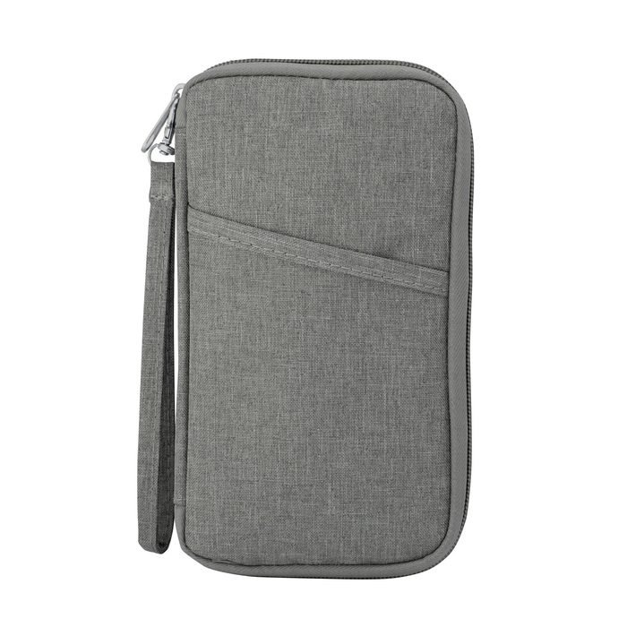 Billetera porta documentos. Estructura acolchada con cierre perimetral y un bolsillo al frente. Bolsillos internos de red de ambos lados con múltiples espacios organizadores y un bolsillo con cierre. Correa de poliéster desmontable con mosquetón. Tirador de cierre metálico .Medidas: 11 x 20 x 2 cm.