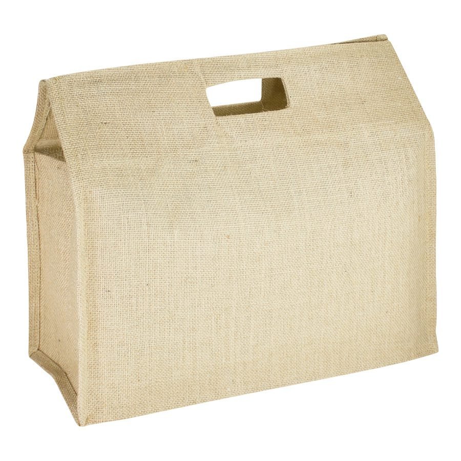 Bolsa de Yute modelo «Biosfera», con recubrimiento laminado interior. Fuelle de yute. Parte superior reforzada con doble tela yute y manillas troqueladas.