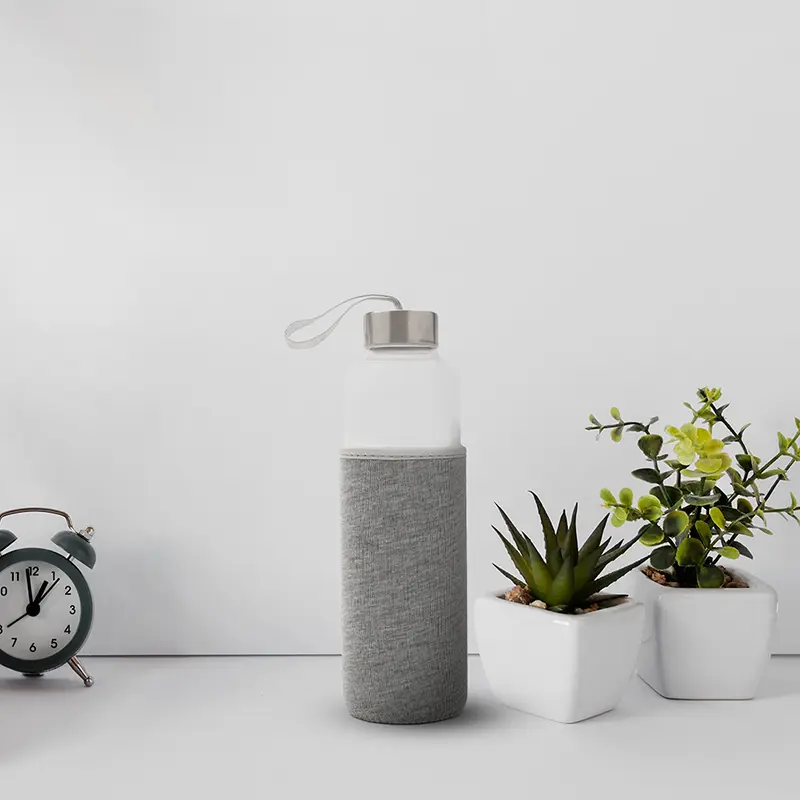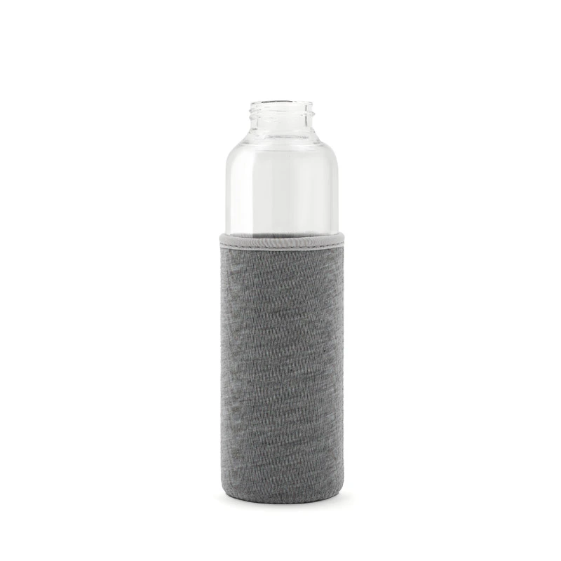 Botella de vidrio con funda protectora de neopreno. Fabricada en vidrio borosilicato y neopreno. Tapa a rosca con cinta, para facilitar el agarre y transporte. Capacidad de 550 ml. Reutilizable. Ideal para deporte o uso diario. Dimensiones: 22,5 x 6,6 cm.