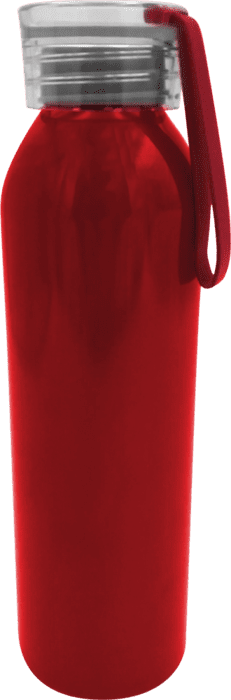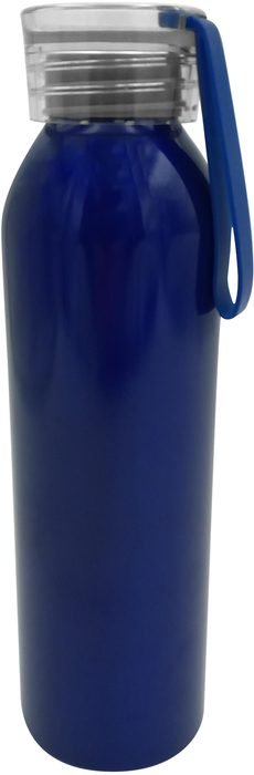 Ø 6,6 x 23,2 cm. Capacidad 600 ml. Aluminio. Botella de aluminio con cuerpo color. Tapa transparente con tira de silicona (de 8 cm) del mismo color que el cuerpo de la botella. Cuerpo de botella recubierto con pintura especial para facilitar la impresión del producto. Presentación en caja de regalo.