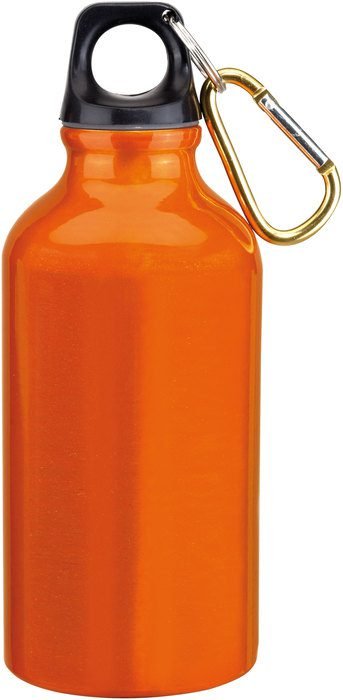 Ø 6,5 x 17,5 cm. Capacidad 400 ml. Aluminio. Botella de aluminio con cierre de plástico y carabina metálica.