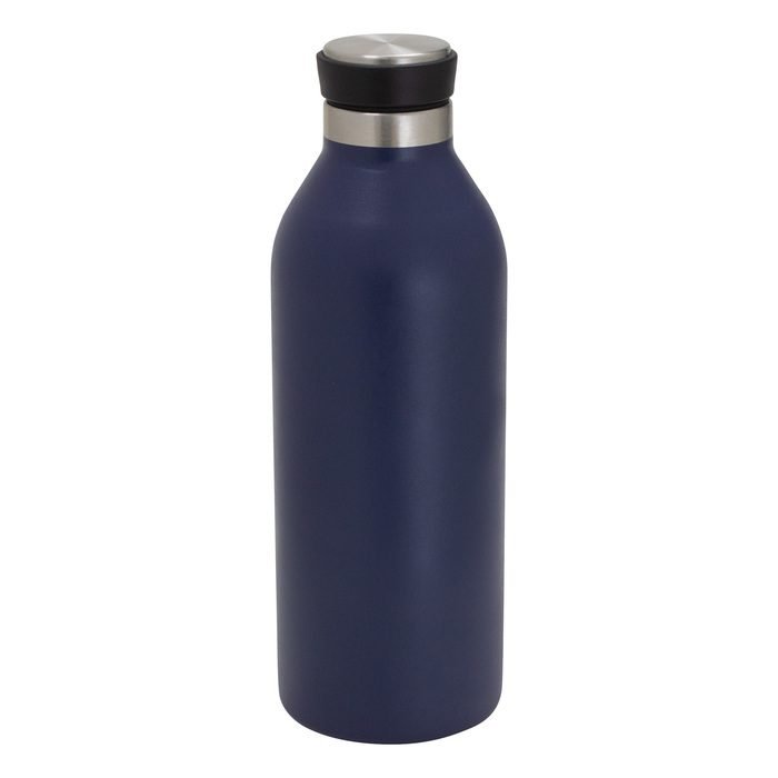 Ø 7,2 cm x 21,5 cm. Capacidad 500 ml. Acero inoxidable. Botella doble pared, sellada al vacío. Interior en acero 304 y exterior en acero 201. Pintura acabado mate. Tapa de polipropileno, acero inoxidable 201 y anillo de silicona. Mantiene por más de 12 hs la temperatura de las bebidas calientes y 24 hs de las bebidas frías. Presentación en caja de regalo kraft.