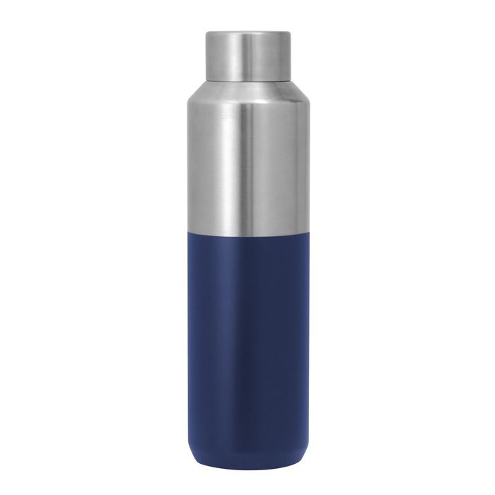 Botella doble pared, sellada al vacío. Tapa a rosca de acero 201 con anillo de silicona. Pintura acabado mate en parte inferior. Medidas: 7 cm x 24,5 cm. Capacidad: 600 ml. Materiales: Acero inoxidable.