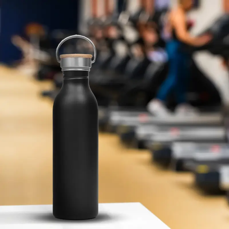 Sport Bottle reutilizable de acero inoxidable AISI 304, con tapa rosca de bambú y gancho de agarre. Producto libre de BPA. Medidas: 25 cm x diámetro 7 cm. Capacidad: 700 ml. ReUseMe. LOGO24: Producto disponible para el servicio de logueo en 24 horas respetando unidades mínimas de logueo y 200 unidades máximas. Consultar términos y condiciones del servicio