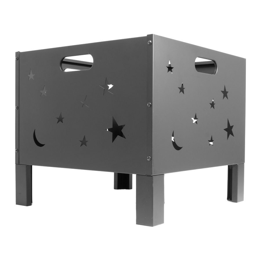 Brasero para Leña o Carbón, de Acero negro, modelo «Constelación». Bowl para fuego: 50 x 50 x 33cm x 10.6mm. Fácil de armar y transportar. Incluye Manual instructivo de armado en español.