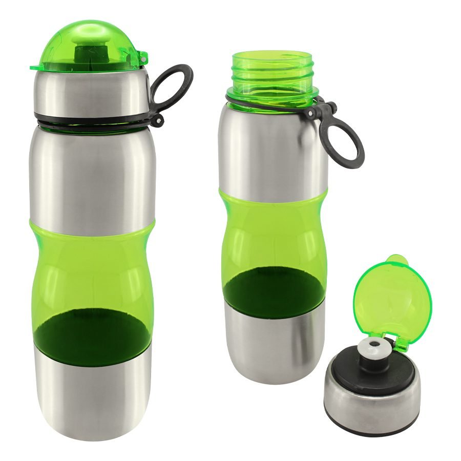 Botella deportiva modelo «Trend», de Acero Inoxidable con plástico rígido traslúcido. Para líquidos fríos (no térmico).