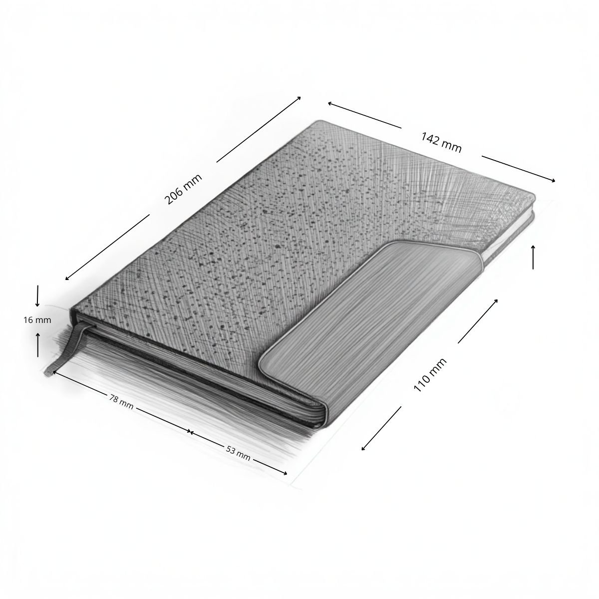 NIZA es un cuaderno A5 que combina materiales naturales con diseño contemporáneo. Su tapa dura está elaborada con fibras de café recicladas, fusionadas con detalles en PU, creando una textura rica y distintiva que conecta visualmente con su origen sustentable. Con 80 hojas punteadas en papel marfil y cinta marcadora en tono café, NIZA invita a escribir, planificar o crear con un toque sensorial que evoca compromiso y autenticidad. Es una elección ideal para marcas que desean asociar su identidad con innovación ecológica. Personalízalo y permite que cada página comunique más que ideas: refleje valores.