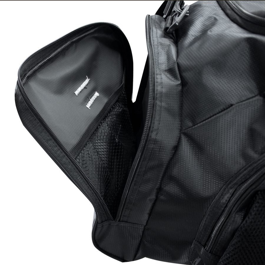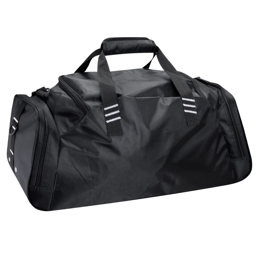 DELUXE Bolso Deportivo y de Viaje grande, modelo «TRAVEL & SPORT». Tela Polyester 840D Jacquard, impermeable. Capacidad 50 litros, tamaño 57 x 32 x 28 cm. Incluye compartimento lateral independiente para Zapatos. Compartimento principal y Bolsillo lateral con vivo y costuras reforzadas. Base protectora de Cartón Forrado. Bolsillo delantero independiente para bordar logo. Un bolso de lujo para sus viajes o paseos.