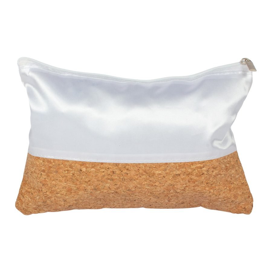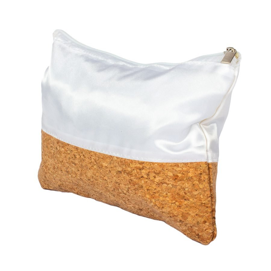 Estuche Cosmetiquero de corcho y poliéster satinado blanco, con cremallera.