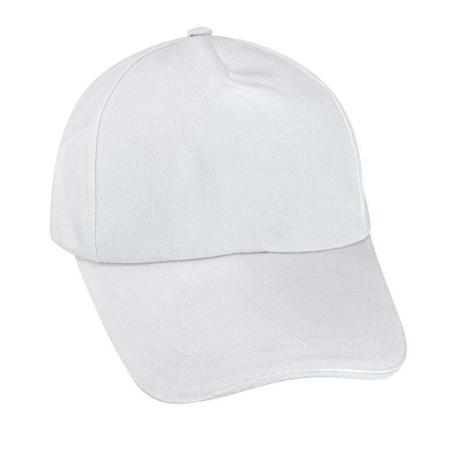 Gorro tipo Jockey 5 paneles en tela Poliéster 210D/PU para Sublimación. Panel frontal liso con amplia área para impresión. Cierre posterior traba velcro.