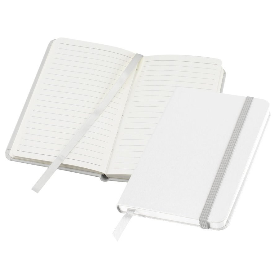 Libreta modelo «Colorskine» tamaño A6, con cubierta de cartón piedra forrada en PU simil cuero de color de 1.5mm de espesor. Interior 80 hojas lineadas amarillas de 80gsm. Incluye banda elástica y huincha separador de hojas al tono. Presentación individual en bolsa de polipropileno.