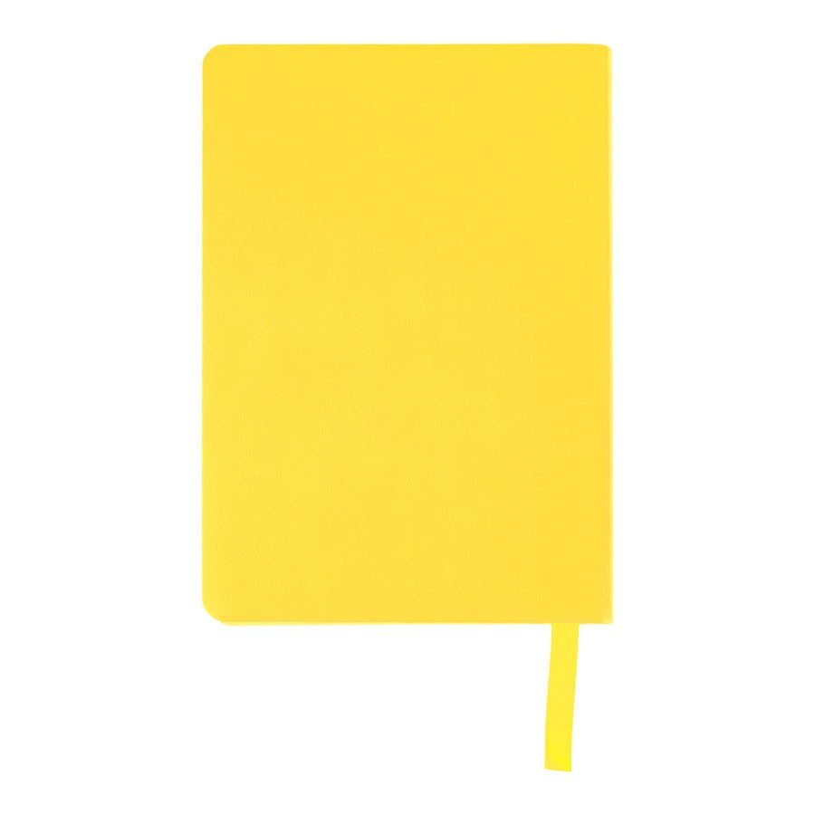 Libreta tamaño A6, con cubierta de PU eco-cuero de 2mm de espesor y lomo pintado de color al tono. Interior 80 hojas lineadas amarillas de 80gsm. Incluye banda separador de hojas al tono. Presentación individual en bolsa de polipropileno.
