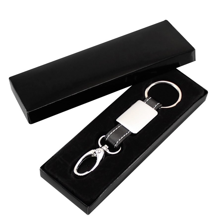 Llavero Metal-Cuero modelo «Technic». Presentación en estuche laminado negro con cuna aterciopelada.