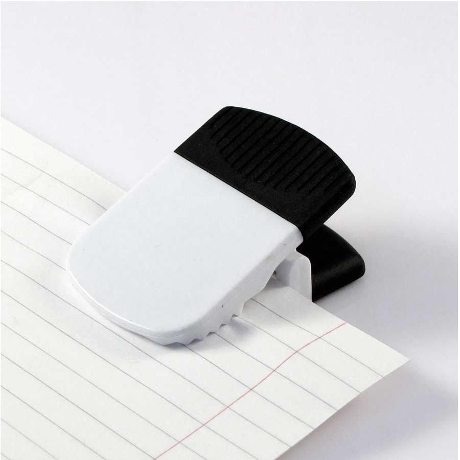 Magne-Clip Grande con base cuadrada y mango de goma negra. Amplia superficie para impresión de logo.