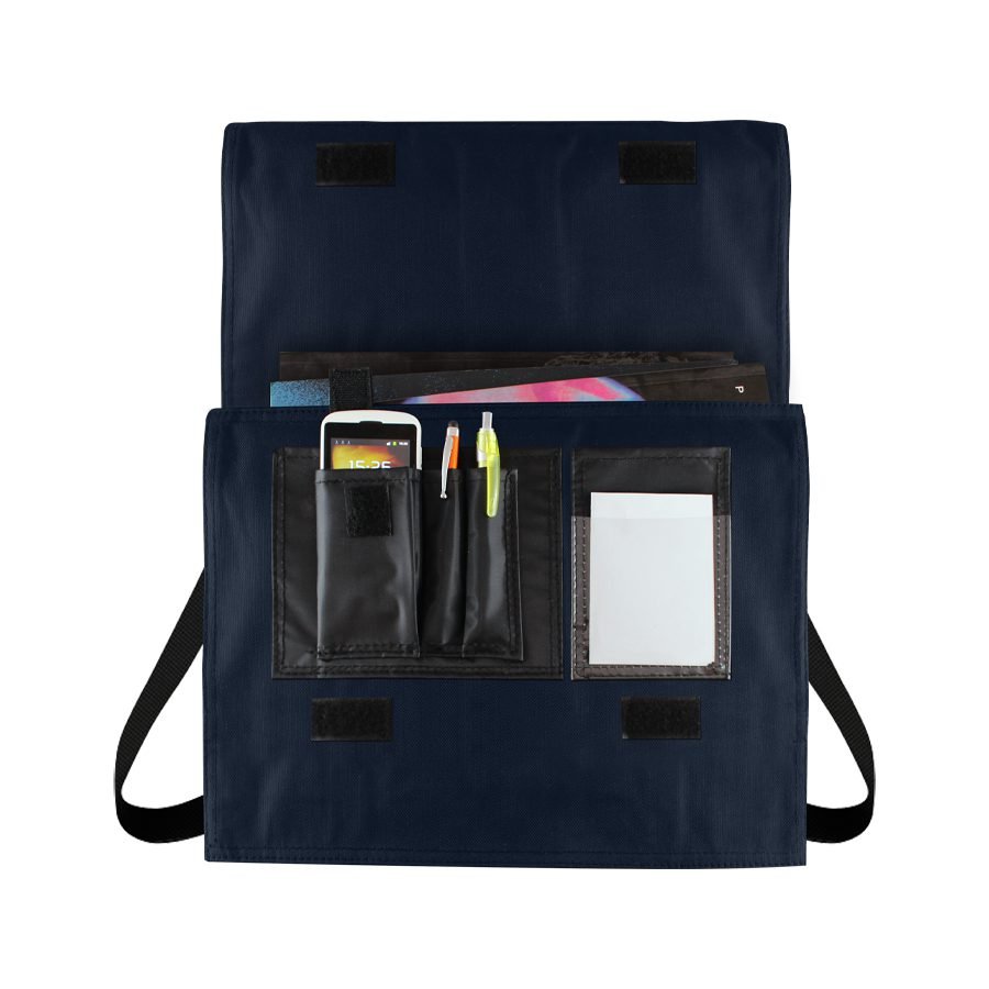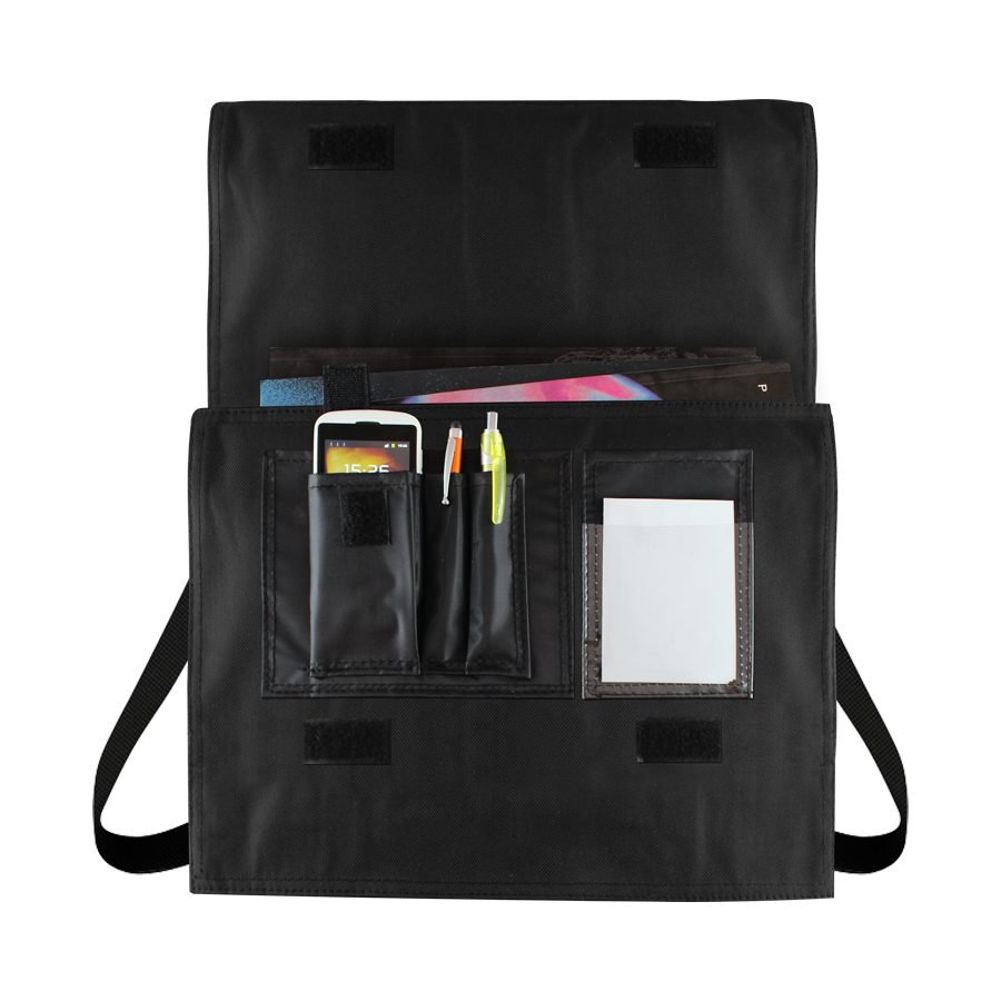 Maletín Portadocumentos de tela raquelada Polyester 600D modelo «Java», con solapa y bolsillo interior multi-accesorios.