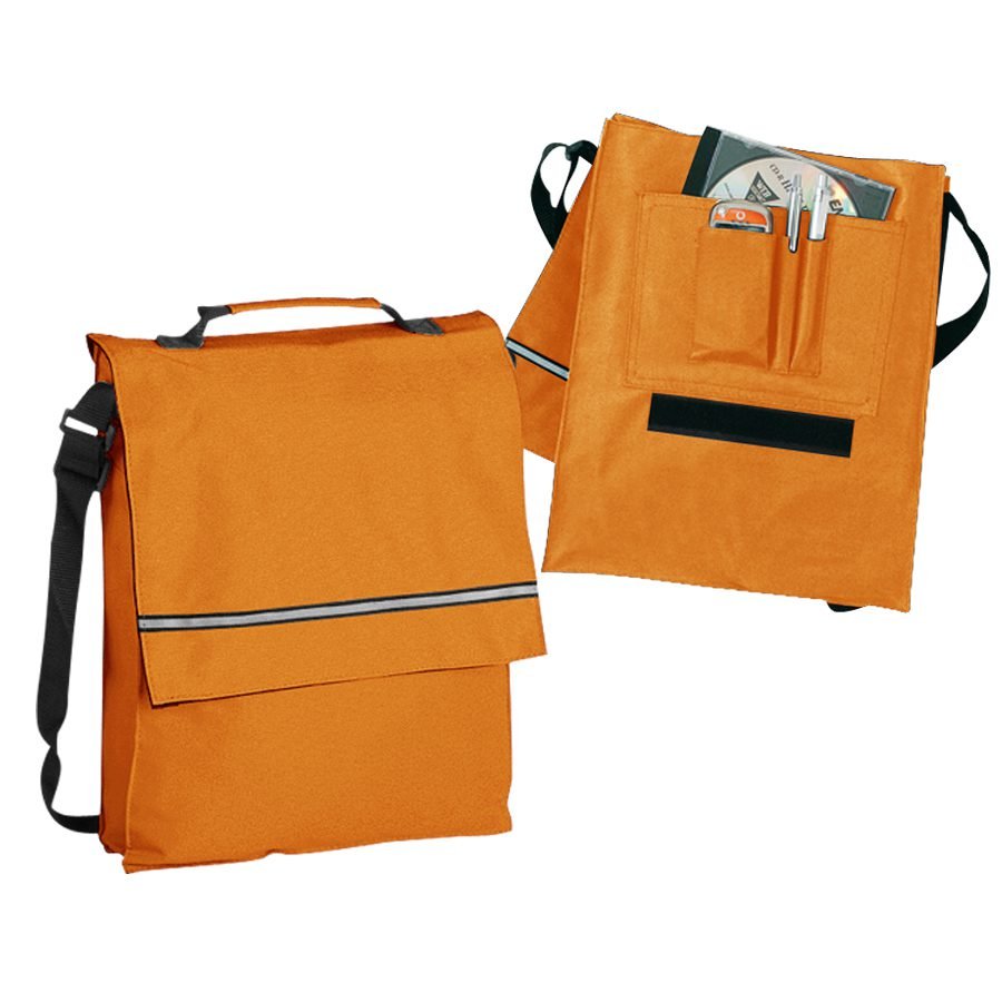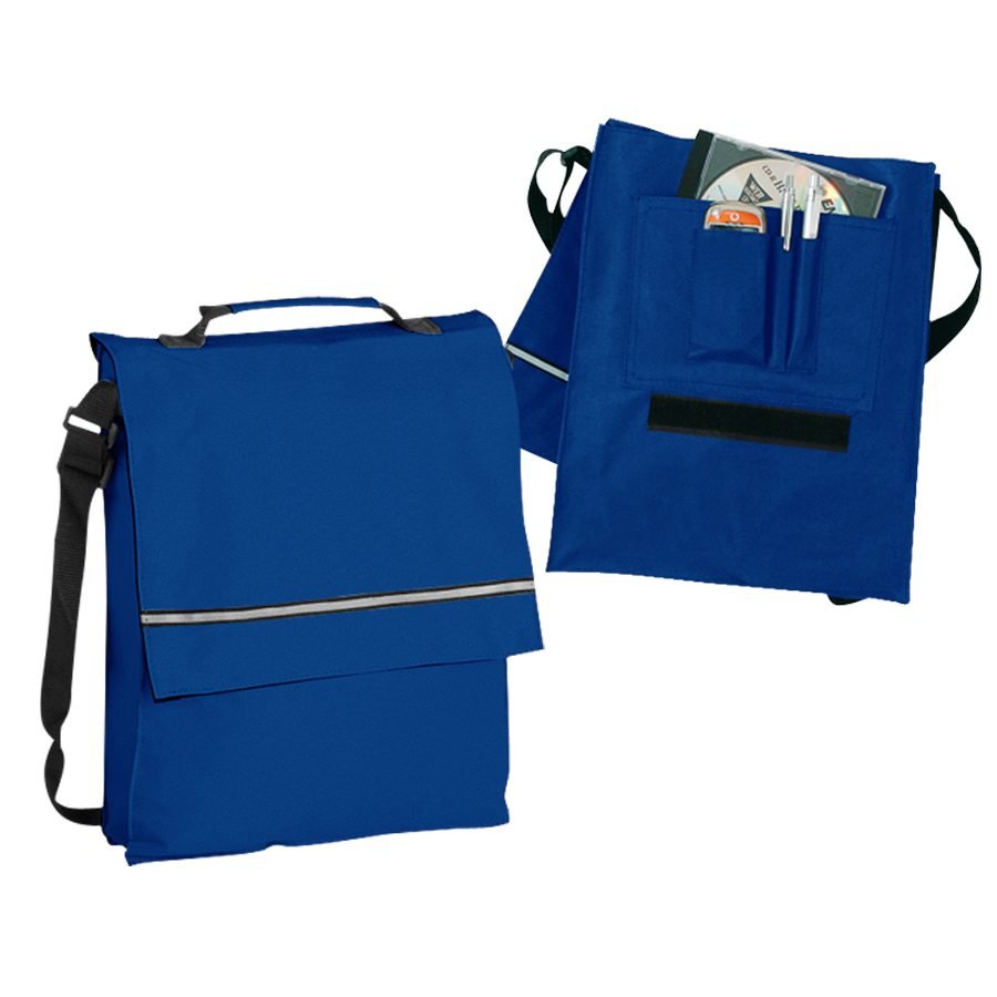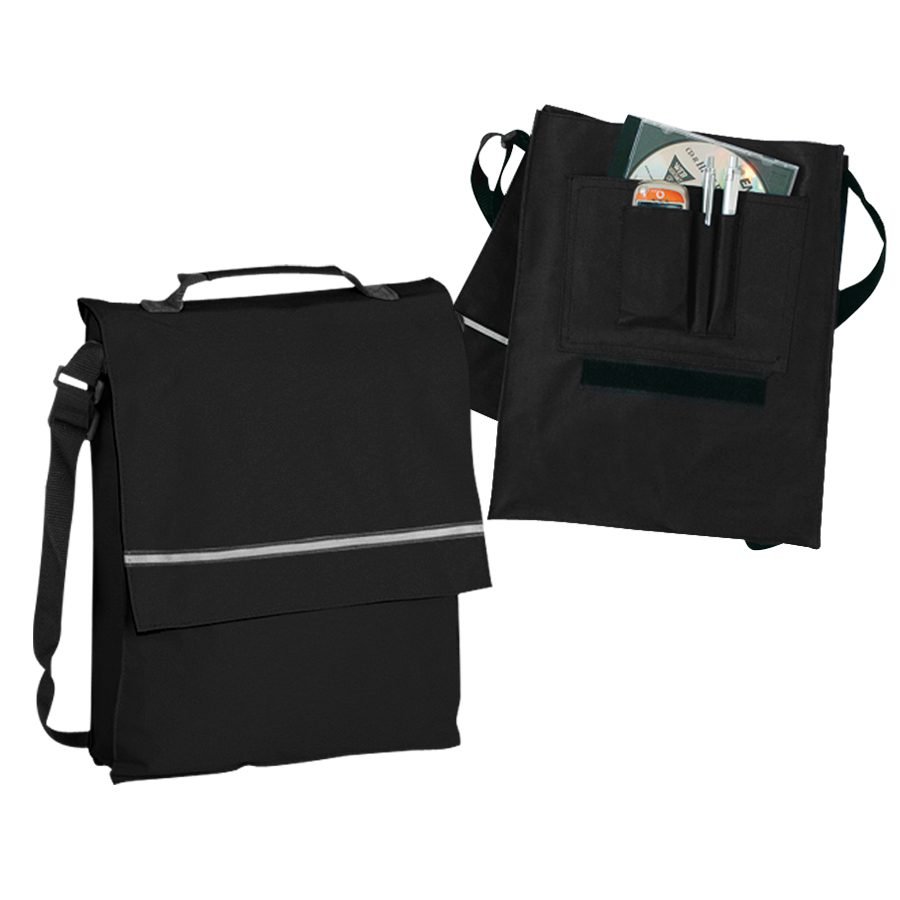 Maletín Portadocumentos de tela raquelada Polyester 600D modelo «Milan», con solapa y bolsillo interior multi-accesorios. Incluye banda reflectante en la solapa.