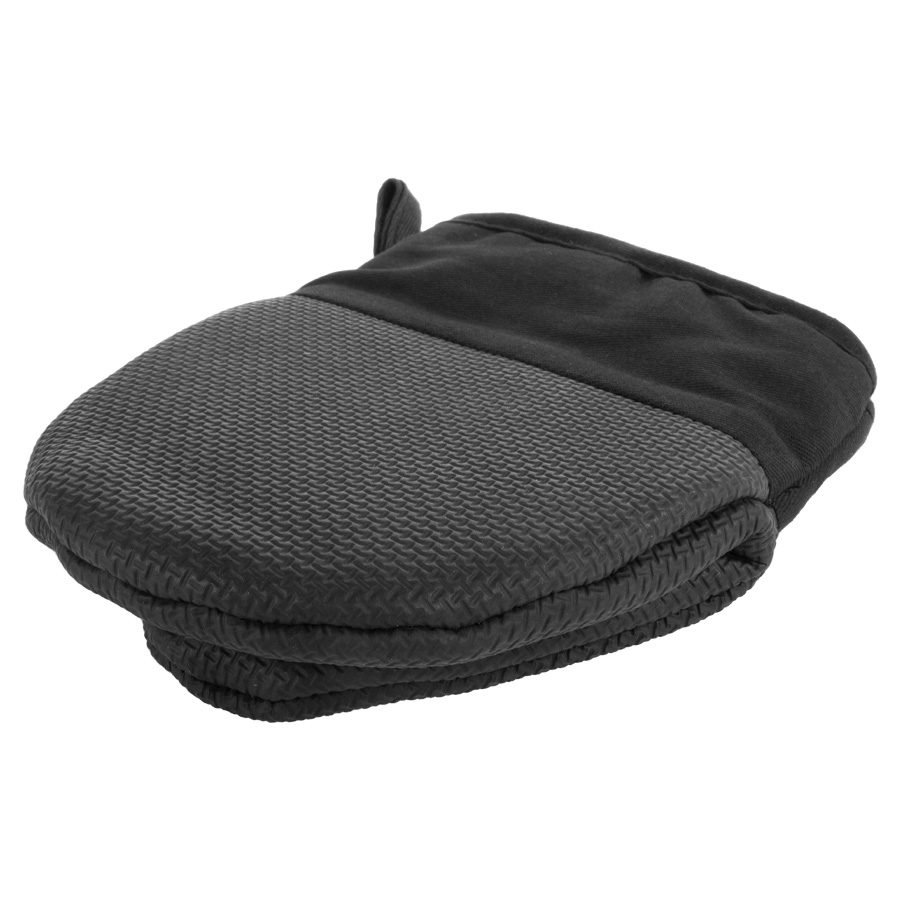 Mitón de Microfibra negra 70g/m2, con refuerzo de goma antiflama, para horno y parrilla.
