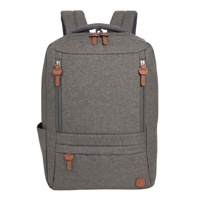 Funcionalidad sin perder estilo.Mochila portanotebook de hasta 15,6 pulgadas. Compartimento principal con bolsillos organizadores de accesorios y bolsillos acolchados para notebook y tablet con cinta y cierre de velcro. 3 bolsillos delanteros con cierre y 1 bolsillo lateral. Asa y correas acolchadas y reforzadas, hebillas plásticas y cierres metálicos con tiradores en poliuretano. Espalda acolchada. Incluye tira para sujetar la mochila en la manija extensible de un equipaje de mano.Medidas: 30 x 42 x 10 cm.