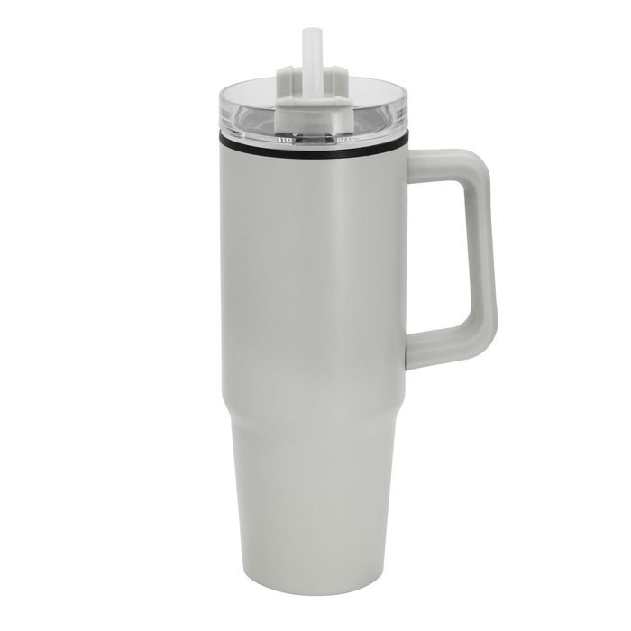8,8 cm x 24 cm. Capacidad 880 ml. Acero inoxidable y PP. Mug doble pared con sorbete. Interior de plástico PP y exterior de acero 201. Tapa plástica transparente a rosca con anillo de silicona. Cierre giratorio porta sorbete. Sorbete plástico translucido. Pintura exterior con acabado mate. Mantiene las bebidas frías y calientes por más tiempo. Presentación en caja de regalo kraft.