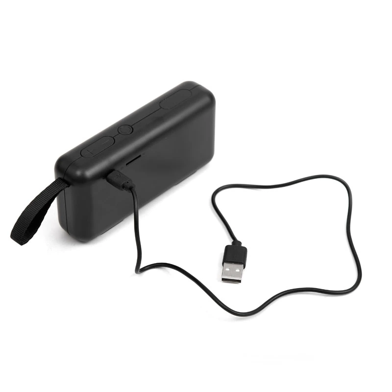 Parlante portátil con tecnología Bluetooth, micrófono manos libres y modo radio FM, realizado en ABS. Incluye ranura para lectura de tarjetas de memoria micro SD. | Batería de 500mAh | Potencia del parlante: 3W | Conexión5V/300mA | Peso: 160g | Medidas120 x 30 x 60mm
