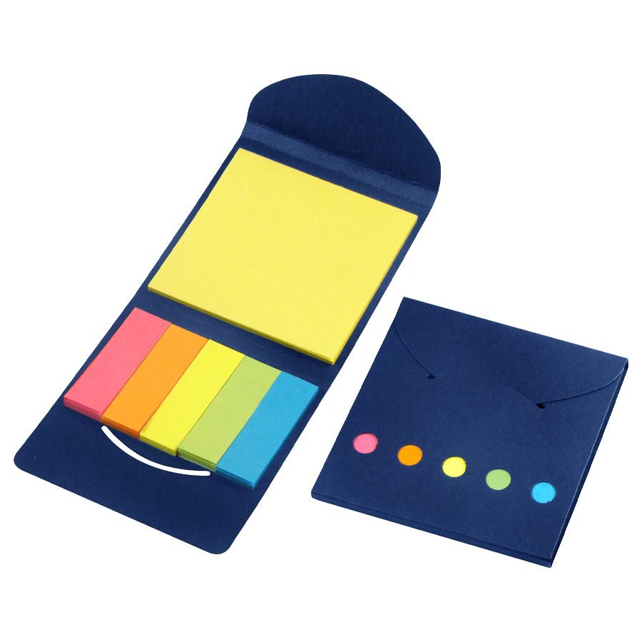 Porta Notas Adhesivas Ecológico de Cartón reciclado. Incluye 1 taco de notas adhesivas de 25 hojas de 7,5 x 7,5 cm + 5 tacos de 25 banderitas adhesivas de 5 x 1,5 cm.