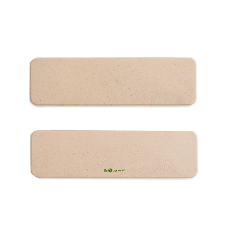 Set de cubiertos de PP y Wheat Straw, pasta de paja de trigo, un material sustentable que reduce el consumo de plásticos vírgenes. Incluye: tenedor, cuchara, cuchillo y contenedor. Medidas: 20,3 x 5,7 x 2,2 cm.