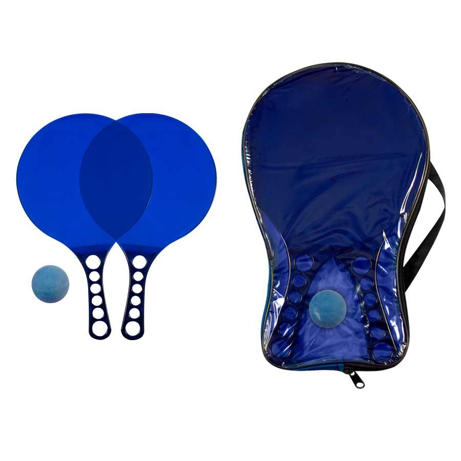 Set de Paletas de Playa de Acrílico de color Traslúcido, incluye estuche de PVC y pelotita de goma.