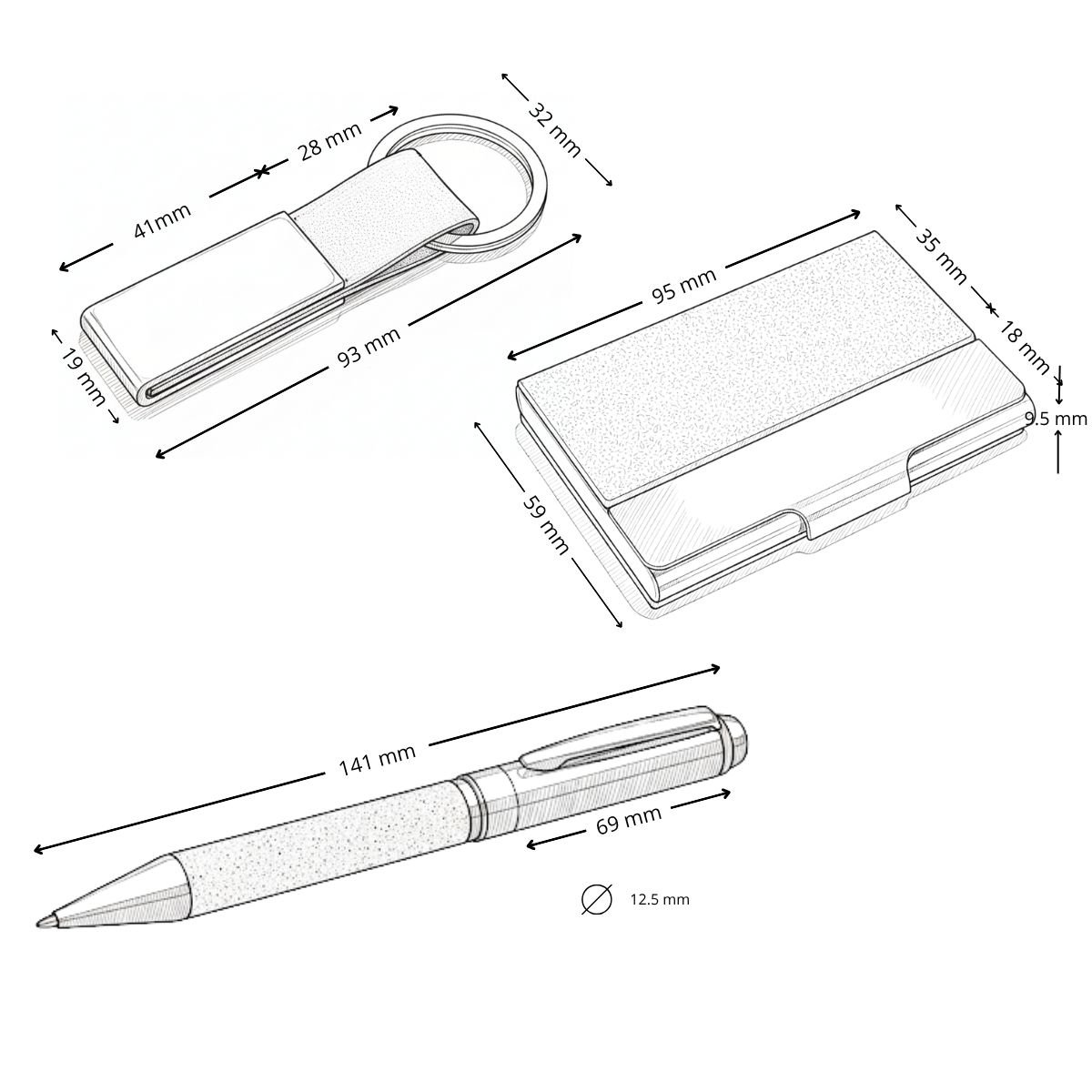 TORAJA es la síntesis perfecta entre sofisticación y autenticidad sustentable. El set incluye bolígrafo metálico con grip de cuero reciclado, llavero y porta tarjetas a juego, todo presentado en una caja de regalo kraft con interior moldeado en EVA. Su diseño en tonos naturales y materiales reutilizados expresa buen gusto y compromiso ambiental a partes iguales. Una oportunidad para que tu marca brille a través de un gesto refinado, útil y profundamente consciente.