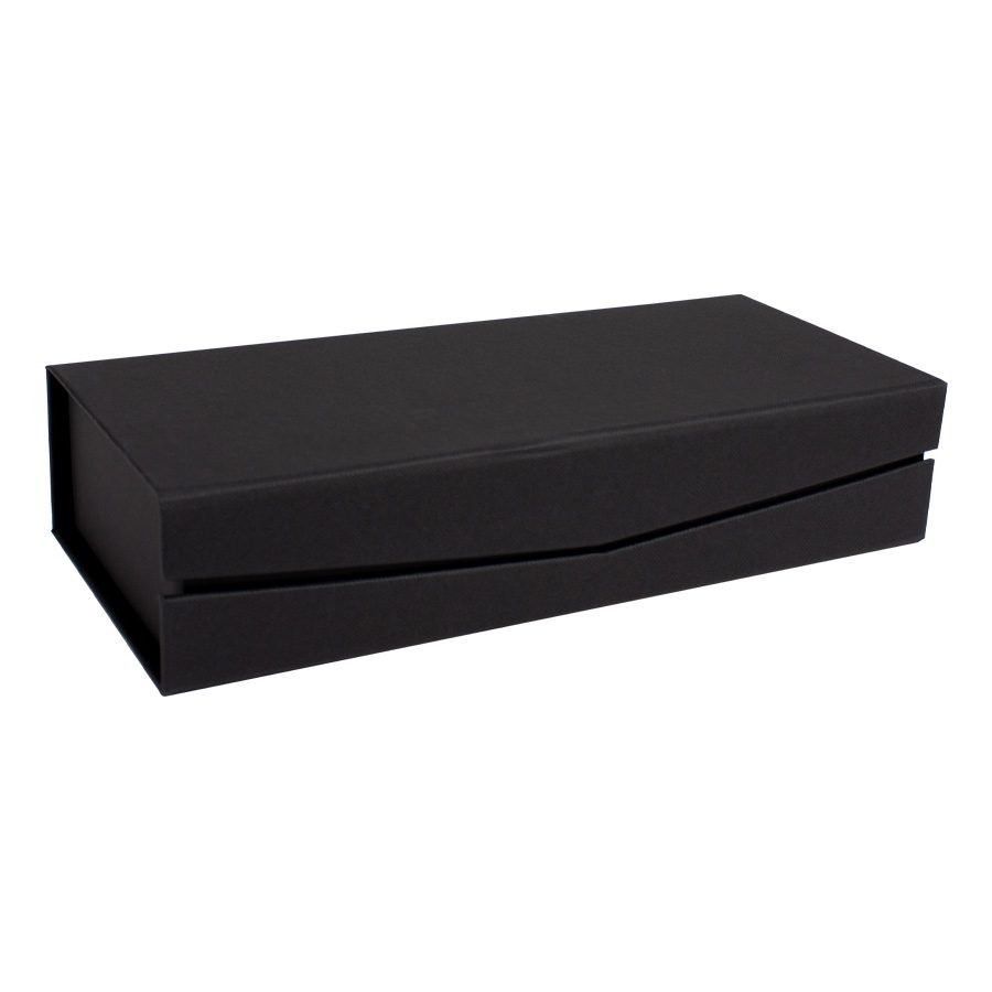 Elegante Trofeo de Cristal Negro, modelo «Azabache». Presentación en caja de cartón forrado negro con cierre imantado, interior acolchado de espuma y tela poliéster satinado negro, con troquel.