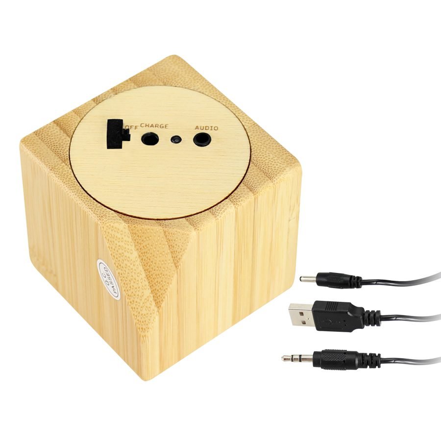 Parlante 100% de madera de Bamboo, con conector USB a DC / AUX Jack 3.5mm.